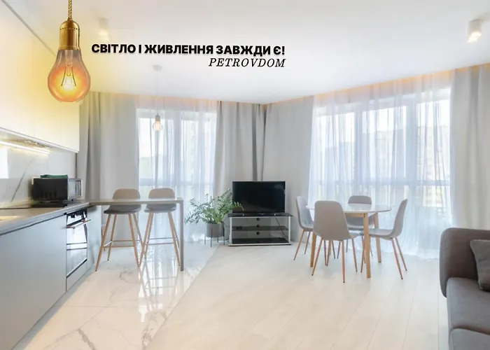 Апартаменты расположились в районе Соломенский, менее чем в 2 км от Золотых ворот. До Государственного музея авиации Украины можно добраться за 10 минут на авто, а до аэропорта Киев им. И. И. Сикорского расстояние составляет 5 км. На расстоянии 25-минутной прогулки вы найдёте Национальный научно-природоведческий музей НАН Украины.